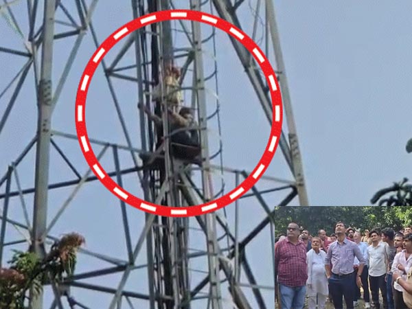 कुशीनगर में 70 साल का बुजुर्ग 110 फीट ऊंचे मोबाइल टॉवर पर चढ़ा