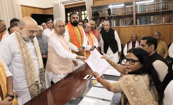 बिहार विधानसभा में राष्ट्रीय जनतांत्रिक गठबंधन के उम्मीदवार अपना नामांकन पर्चा दाखिल कर दिया है। सीएम नीतीश कुमार, नितिन नवीन, रामनाथ ठाकुर, उपेंद्र कुशवाहा और शिवेश कुमार ने अपना नामांकन पर्चा दाखिल कर दिया। गृह मंत्री अमित शाह, डिप्टी सीएम सम्राट चौधरी, विजय सिन्हा, मंत्री विजेंद्र यादव, विजय चौधरी समेत भाजपा-जदयू के कई वरिष्ठ नेता नामांकन कार्यक्रम में शमिल हुए।