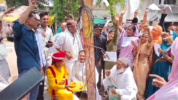 बुंदेलखंड इंसाफ सेना के बैनर तले प्रदर्शन में पहुंचे उजरेहटा गांव के दूल्हे कुलदीप कुमार ने कहा कि उसकी बारात महोबा के खन्ना गांव जानी है। वह बरात की तैयारी कर रहा था, तभी पावर कारपोरेशन की ओर से उसके घर की बिजली काट दी गई। इससे वह आहत हुआ है। घर में लोग गर्मी से हाल बेहाल होने लगे। इस पर आक्रोशित दूल्हा बैंडबाजा और बारात लेकर कलेक्ट्रेट पहुंच गया। मनमाने बिल और आए दिन कटौती का आरोप लगाते हुए विरोध प्रदर्शन कर दूल्हे न सिर्फ डीएम को संबोधित ज्ञापन सिटी मजिस्ट्रेट को सौंपा बल्कि यह भी कहा कि वह बिना बिजली वाले घर में दुल्हन को कैसे लाएगा। कुलदीप के मुताबिक स्मार्ट मीटर लगने के बाद से बिल दोगुना आ रहा है, जिसे चुकाना उसके लिए मुश्किल हो गया है। घर में रिश्तेदार हैं और ऐसे में बिजली न होने से सभी को दिक्कत हो रही है। कुलदीप ने कहा कि वह बिना बिजली के घर में दुल्हन को कैसे लाएगा। इस दौरान जिलाधिकारी कार्यालय में बारात और दूल्हे ने विरोध-प्रदर्शन भी किया।