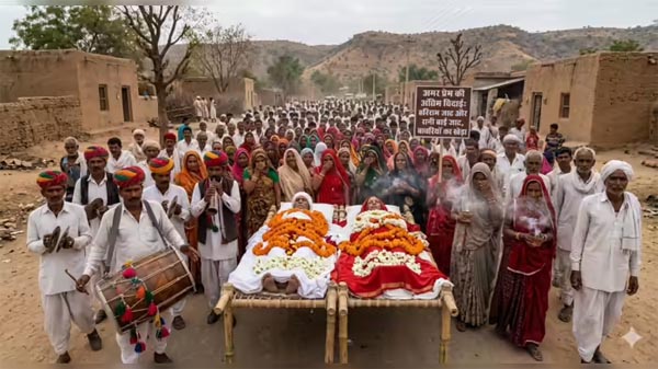 दंपती के इस अनोखे प्रेम को देखकर परिजनों और ग्रामीणों ने एक ऐतिहासिक निर्णय लिया। उन्होंने तय किया कि जिस तरह इन दोनों ने जीवनभर एक-दूसरे का हाथ थामे रखा, अंतिम विदाई भी वैसी ही भव्य और साथ होनी चाहिए। पूरे गांव में बैंड-बाजे के साथ उनकी अंतिम यात्रा निकाली गई। यह दृश्य गमगीन होने के साथ-साथ गौरवपूर्ण भी था। बैंड की धुनों के बीच जब दोनों की अर्थियां कंधे से कंधा मिलाकर चलीं, तो हर आंख नम थी, पर दिल में इस जोड़ी के प्रति सम्मान अटूट था।